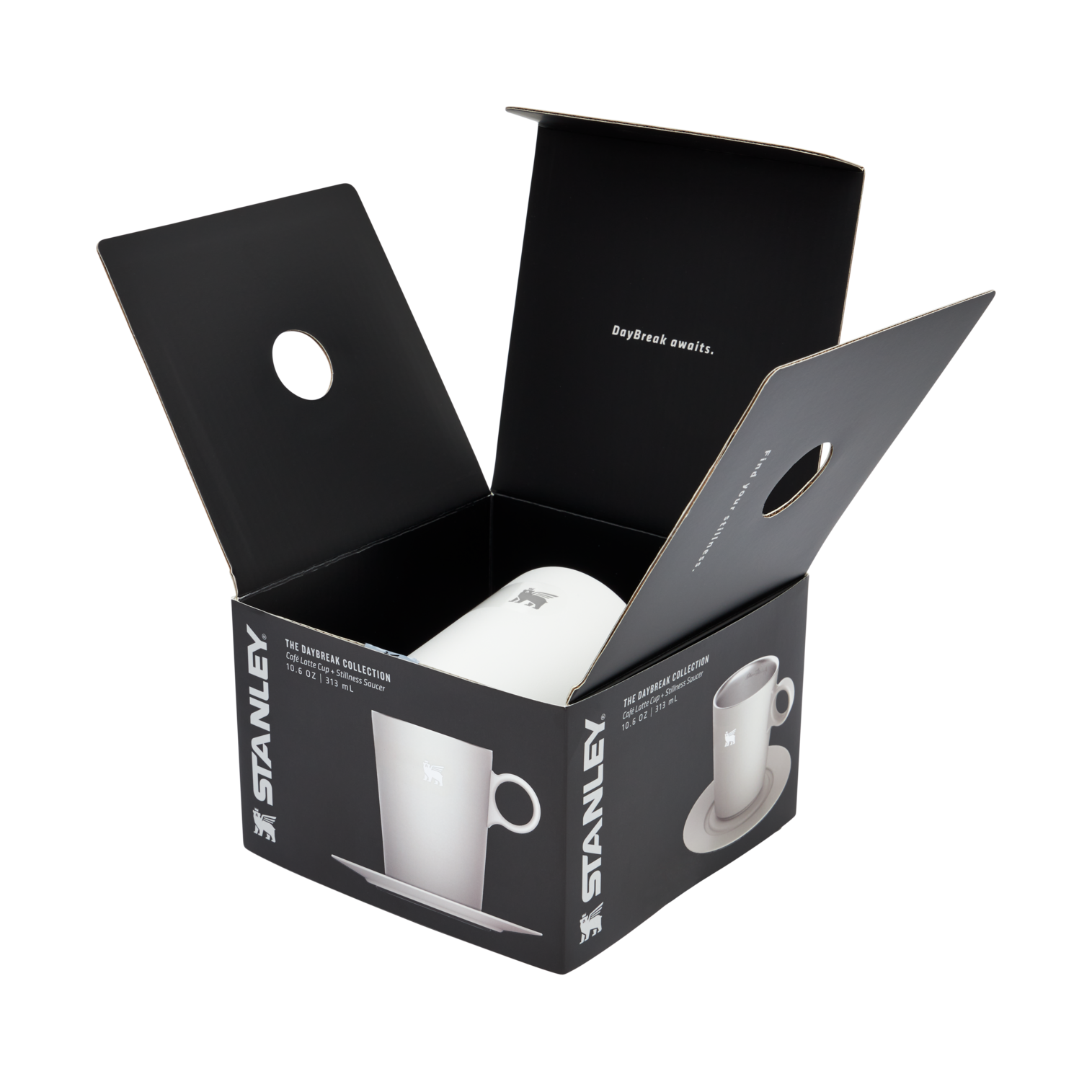There’s a non-slip silicone base on the Latte Mug and Stillness Saucer for a quiet. stay-still landing. The double-wall vacuum insulation keeps your drink nice and hot (or chilled) from the first sip to the last. And the circular handle makes the cup truly comfortable to hold.