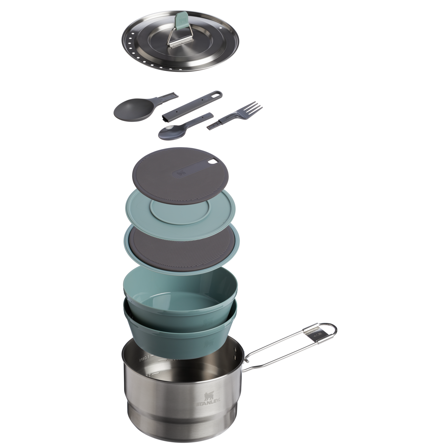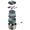 The 14-piece Wildfare Go Two Bowl Prep & Cook Set nests neatly together for efficiency. Open the 1.65-quart stainless steel saucepan to find two 16-ounce bowls inside. The included two-piece spatula and pair of dual-sided sporks go easily from compact to full sized. Nonslip cutting boards include removable silicone trivets. All the luxury of cooking at home. in the wild.